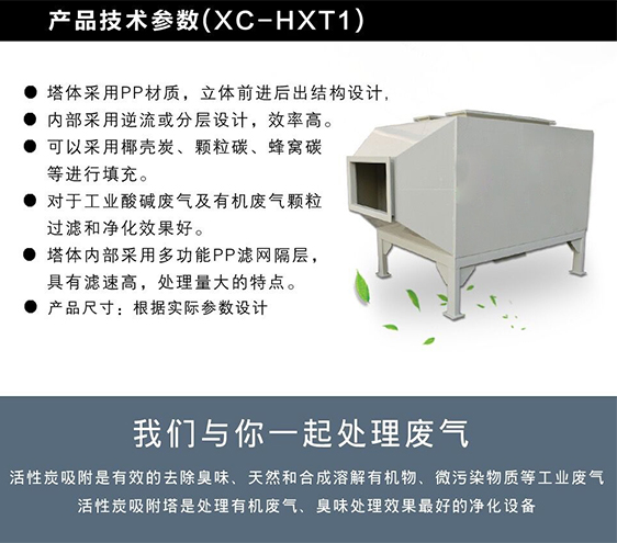活性炭吸附塔是處理有機廢氣、臭味處理效果非常好的凈化設備。活性炭吸附是有效的去除水的臭味、天然和合成溶解有機物、微污染物質等的措施。該設備是凈化較高濃度有機廢氣和噴漆廢氣的吸附設備,是利用活性炭本身高強度的吸附力,結合風機作用將有機廢氣分子吸附住,對有機溶劑的廢氣有很好的吸附作用。在實際安裝和應用情況,總結國內外同類產品的生產經驗,改進設計制造,推出下料形式方便,表面平整度更出色,結構強度更高,吸附能力更強的活性炭吸附塔。我公司生產的活性炭吸附裝置應用活性炭吸附原理,和吸附同類產品特點改進設計。本裝置處理風量較大、采用氣動閥門,操作管理簡單安穩。